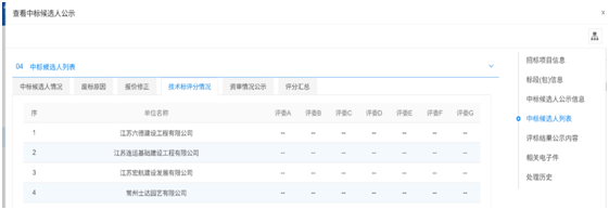 A13:在【中标候选人列表】-【技术标评分情况】模块中,如果本项目中没有该评分节点,可以进行删除;【评分汇总】中,可根据本身项目的评分节点名称进行合理修改。详见图9。