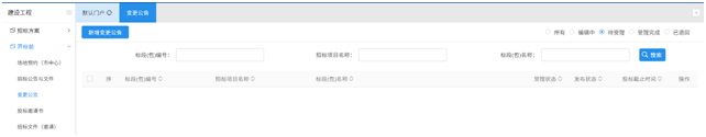 A16:在【变更公告】中【新增变更公告】编辑变更公告内容即可。详见图10。特别提醒:变更公告需在“特殊情况——招标异常”前发布。