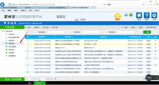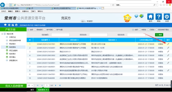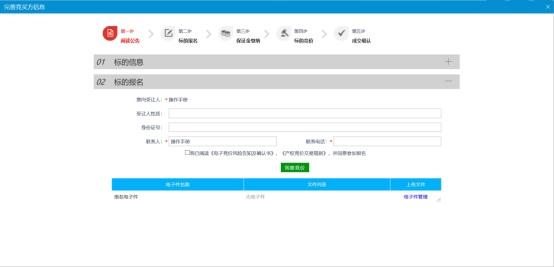 (1)进入系统后,选择标的报名,点选操作下方的按钮,完善报名信息,最后点击“我要竞价”。