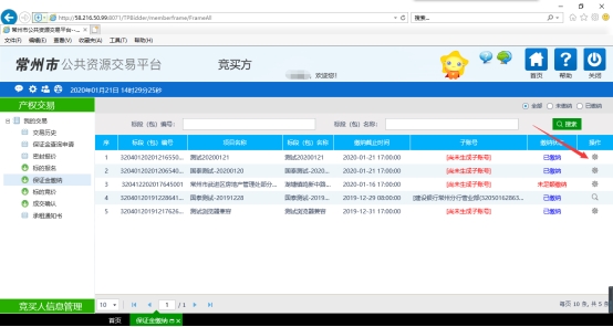 (2)选择保证金缴纳,点击操作下方的按钮,勾选保证金缴纳银行