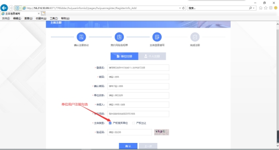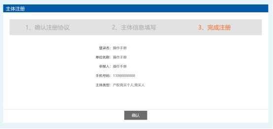 个人用户注册请勾选“产权竞买个人”,单位用户注册请勾选“产权竞买单位”,点击“确认”按钮。