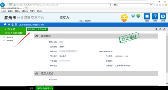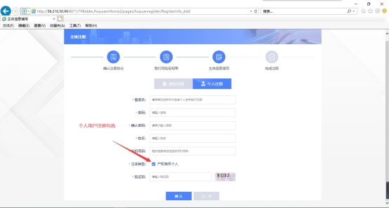 选择“个人注册”的用户,填写相应信息,点击:“修改信息”。