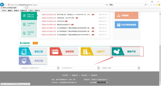 进入常州市公共资源交易网(http://ggzy.xzsp.changzhou.gov.cn/),选择国有产权,