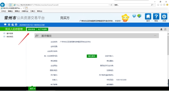 选择“单位注册”的用户,填写相应信息,点击:“修改信息”。
