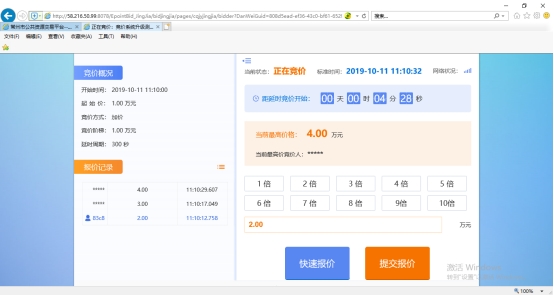 (4)进入报价环节,点选竞价阶梯倍数,点击发送报价,则报价成功。