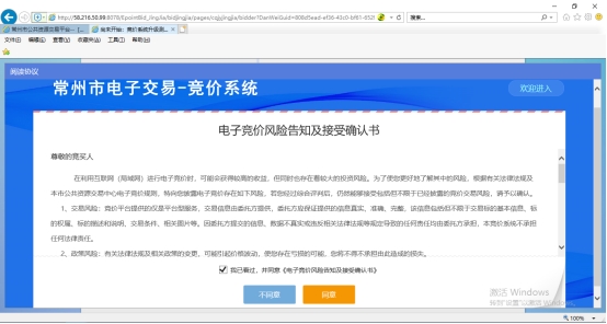 (3)保证金缴纳成功后,进入标的竞价,同意电子竞价风险告知书后方可进入报价。