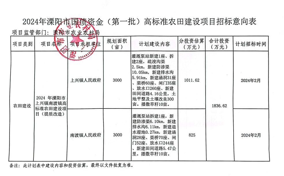 2024年溧阳市国债资金(第一批)高标准农田建设项目招标计划.pdf