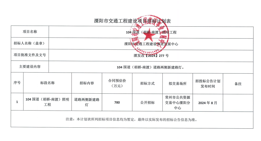 104国道(胡桥-南渡)照明招标计划表.pdf